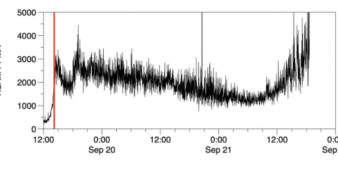 El volcán de la Cumbre Vieja entraba en erupción el pasado domingo 19 de septiembre tras una semana de seísmos en la zona. En la actualidad, y debido al trayecto de la lava, hay 154 hectáreas afectadas, más de 320 edificaciones destruidas y 6.100 familias desalojadas de sus núcleos poblacionales. Durante la noche del pasado martes el proceso eruptivo cobraba fuerza tras un aumento en la intensidad de las erupciones, e incluso se llegó a pensar que había surgido una nueva boca volcánica.Por ello, el Instituto Volcanológico de Canarias (INVOLCAN) publicó en sus redes sociales que la Red Sísmica de Canarias está registrando desde el pasado martes por la tarde un fuerte incremento en la amplitud del tremor volcánico, que es un indicador de la intensidad de la actividad explosiva estromboliana en las bocas activas que hay este momento. Las erupciones estrombolianas aquella que se caracterizan por explosiones poco violentas y esporádicas. En la siguiente imagen publicada por el INVOLCAN, se ve como hay un aumento de actividad en el volcán en comparación con el lunes.