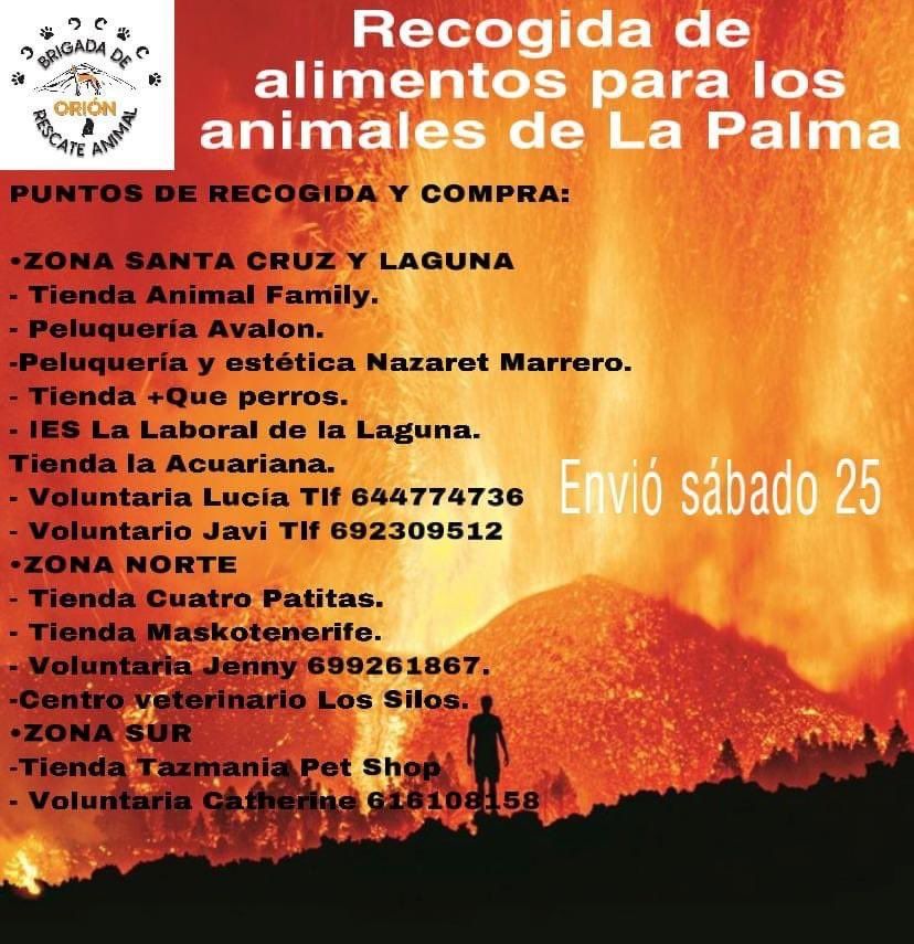 Por otra parte, la recogida de ropa y enseres también es de crucial importancia para todas las personas que hayan perdido sus casas, por lo que se han habilitado diferentes puntos de recogida. Entre ellos los habilitados por la Federación de Empresarios de La Palma en Santa Cruz de La Palma (Calle Plaza de la Constitución, Edificio de Usos Múltiples, número 4. Bajo izquierda. Teléfono: 922 41 52 48) y en Los Llanos de Aridane (Calle El Calvario, número 11. Bajo. Teléfono: 922 40 18 91).En todas las tiendas Base también se podrán donar enseres y comida para los afectados.A continuación, publicamos algunas de las asociaciones y empresas que piden colaboración para ayudar tanto a animales como personas en La Palma. Si conoces otra plataforma que también pida ayuda puedes ponerte en contacto con nosotros para incluirlo en la lista.