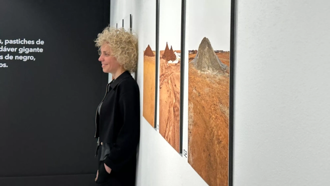 Para la artista el plástico negro es muy simbólico porque busca plantear “un tipo de solución”, pero no la definitiva “porque nosotros seguimos generando vertidos y realmente están tapados. “Es como meter debajo de la alfombra toda esta basura y entonces es un proceso curioso porque se hacen unos grandes agujeros, la basura se compacta”, añadió.