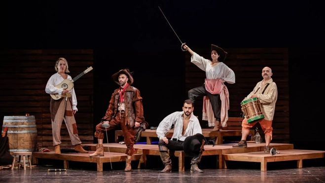 El director se inspiró en la llegada de esos piratas en 1599 a una ciudad de apenas 5.000 habitantes. Recrea una taberna de finales del siglo XVI en la que se pueden ver y escuchar las vicisitudes de la población isleña el día que llegan los corsarios y atacan la ciudad. “Si bien no situamos explícitamente la obra en Las Palmas de Gran Canaria, la ambientamos en el siglo XVI y XVII, incorporando numerosos referentes históricos de Canarias”.