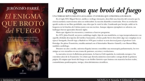 Se trata de un thriller histórico que fusiona hechos reales, costumbrismo postfranquista, intriga y descubrimientos científicos, como el ocurrido en el siglo XVI, cuando Miguel Servet, médico y teólogo visionario, descubre lo que en términos médicos se denomina “la succión diastólica ventricular”. Un proceso crucial para el adecuado funcionamiento del corazón del que este insigne galeno dejó constancia escrita en un libro calificado como prohibido, que ardió en la hoguera junto a este cardiólogo, condenado por herejía en Suiza, junto a Calvino.