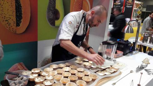 Los huevos escalfados van acompañados de un Beurre Blanc de vino blanco malvasía, mojo rojo y queso de cabra en flor.