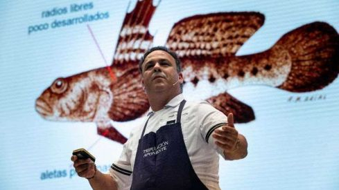 Crear y luchar contra las plagas. El gaditano ha seguido enumerando nuevos productos y encontrando soluciones: “este año hemos trabajo con las huevas de la liebre de mar, que son como unos noodles. Son una plaga y debemos combatirlas, por qué no introduciéndolas en nuestro menú. Así disfrutamos y preservamos nuestro ecosistema”. Es un win-win. En el mismo sentido ha hablado de los “guppy”, “un pescado pequeño que es una especie invasora en los esteros y con el que recreamos los chanquetes”. Además, añadía, “es un pescado muy barato, y muy sabroso, y con su consumo podemos echarle un cable al mar”.