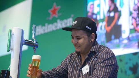 Josué Rodríguez, barman del Gastrobar “El Santo” (Las Galletas, Tenerife) sirvió este jueves la cerveza perfecta y se alzó con el primer premio de la cuarta edición del Campeonato de Canarias de Tiraje de Cerveza- Gran Premio Heineken® que se celebró en el Escenario Heineken® del Salón Gastronómico de Canarias, Gastrocanarias, evento cuyo patrocinador principal es Insular Canarias de Bebidas (Incabe).