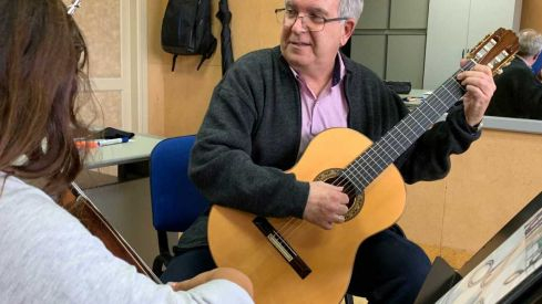 La guitarra y Fernando forman una simbiosis que te transporta y hace disfrutar desde que suenan las primeras notas. Esa unión lleva muchos años fraguándose en diferentes colectivos musicales, Rondallas de Carnaval, grupos folclóricos, coros que se incluyen dentro de los diferentes “tumbos” laborales que ha dado en su trayectoria profesional. Me asombra mucho, aunque no me sorprende, el cariño y respeto que le tiene la profesión y sobre todo los alumnos que han pasado por sus clases, hoy en día, profesores y profesionales consolidados, que donde quiera que van, nombran y veneran a su profesor de guitarra. Para llegar a ese reconocimiento hay que ser buen profesional pero también, y como ya indicamos al inicio, Fernando en buena persona. Félix Morales, Pedro Izquierdo, David Duque, Josué Villanueva….todos ellos y muchos que se nos quedan en el olvido, siempre hablan y recuerdan su relación con Fernando.
