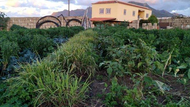 Mary llegó a la zona por casualidad y, desde hace ya cuatro años, lleva adelante con gran pasión y mimo una finca de más de 5000 m junto con otra más en Tegueste. Allí cultiva una buena diversidad de hortícolas, especias, aromáticas y flores comestibles. Mary ya es conocida en la isla por su capacidad de cultivar stevia, así como otros productos transformados que ella misma deshidrata, mezcla y transforma en su “laboratorio de sabores”.Los aromas se entremezclan entre los paquetes de infusiones, aromáticas, así como los polvos de verduras, sopas deshidratadas y especias como la cúrcuma en polvo, frutas deshidratadas como el mango o la harina de plátano lista ya para vender.