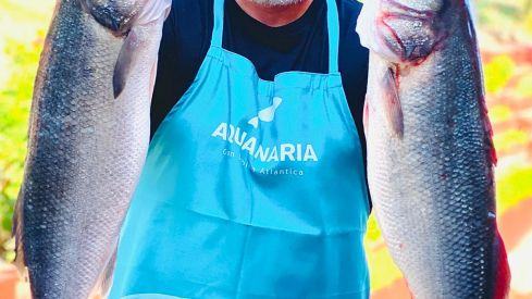 El Caserón del Cortijo, Telde. Al frente de las brasas del restaurante, durante siete años, el jefe de cocina Inti Ramsés. Ya comentaba su colega Braulio Rodríguez, chef de Majuga, en la capital grancanaria la excelencia en la singular línea de pescado madurado en una plaza principalmente especializada en piezas cárnicas. Sin embargo, el cocinero ha introducido desde hace un tiempo la lubina atlántica de Aquanaria con este formato de la maduración en cámara que está obteniendo una gran aceptación entre los clientes. “En nuestro establecimiento siempre hemos preparado a la parrilla una materia prima importante, nacional e internacional e incluso de las Islas; un género cercano capaz de satisfacer el gusto de cada comensal. En los últimos tiempos hemos puesto la atención también en los productos del mar, que no está separado de la parrilla, todo lo contrario”, comenta Inti Ramsés. “Cuando hablamos de la brasa lo estamos haciendo de la manera más ancestral de cocinar; otros se aplican a la esfera, la espuma o el aire, pero aquí estamos en contacto directo con la parrilla, con la leña, el carbón,… Así, un pescado como era esta lubina atlántica –explica- nos pareció interesante para experimentar lo que tuve ocasión de observar en su día en Japón, años en un mercado se vendían los pescados por los diferentes procesos de maduración (8-9-10 días desde la captura). Me picó la curiosidad e investigué acerca de esta técnica”. “Es algo que se ha hecho toda la vida por parte de nuestros abuelos: secado al sol, salazones,… para comprimir al máximo los sabores. La tecnología actual nos ha acompaña y una de las cámaras de maduración la reservamos para esto, limpiando muy muy bien cada”. El cocinero subraya que se ha convertido en un plato muy solicitado. “Empezaron a demandarlo y se ha convertido en uno de los más rutilantes de la carta, y sale tanto o más que las carne”. “De hecho –precisa Inti Ramsés-, comenzó a pasar algo muy curioso y es que los clientes preguntaban cuántos días había estado en la cámara esa lubina: de ahí empezaban a matizar y reservamos en función de cada uno; es algo muy bonito, pues no hay nada más agradable que satisfacer a un comensal que viene a cumplir una expectativa”. Se termina de rematar la faena del pescado madurado en la parrilla con un toque maestro, claro está. “No hay que ponerle ni aceite, que la lubina tiene su propia grasa natural, sal y pimienta y ya está. Estoy satisfecho e iremos avanzando el próximo año pues ya tengo algunos proyectos nuevos con la misma línea de trabajo”. Las piezas van acompañadas normalmente con verduras a la brasa, pimientos, espárragos y papa asada. “Esa es la guarnición base aunque luego cada cliente nos pide con papas fritas, con ensalada… intentamos complacerlos a todos y estamos usando incluso géneros que no suelen ir a la parrilla como el repollo, por ejemplo”. “Ante comensales reticentes, primero les indico que esto lo practicaban nuestros predecesores, sin cámara de maduración; éstas favorecen unos parámetros necesarios con placas para propiciar la atmósfera salina que evita microorganismos no deseados, además de un flujo de aire importante . Se puede abrir una cámara y percibir olores francos”. Finalmente, a la pregunta de cuál es para Inti Ramsés la maduración ideal, considera que a lo máximo que ha llegado es a 20 días aunque con una lubina grande de 5-6 kilos. Entre los ocho y diez días es lo ideal”. Francisco Belín