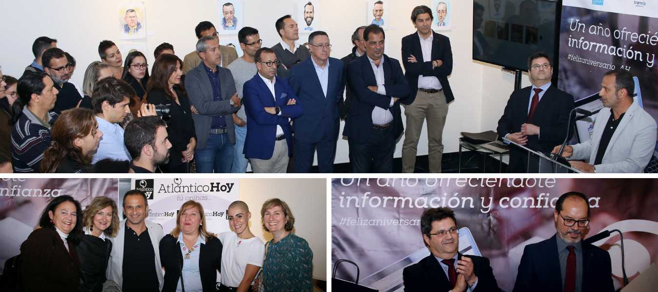 Tras dar la bienvenida al acto, el presidente de AtlánticoHoy Digital, Corviniano Clavijo, en compañía de sus socios cofundadores, Sergio Fernández y Adison Pérez, destacó el talento y peculiar visión del caricaturista palmero, plasmados a la perfección en los retratos humorísticos de los personajes más populares de la política, la cultura, el deporte y la sociedad canaria en general.
