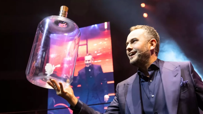 Jorge Blass durante uno de sus juegos de magia en su espectáculo 'Flipar' CEDIDA