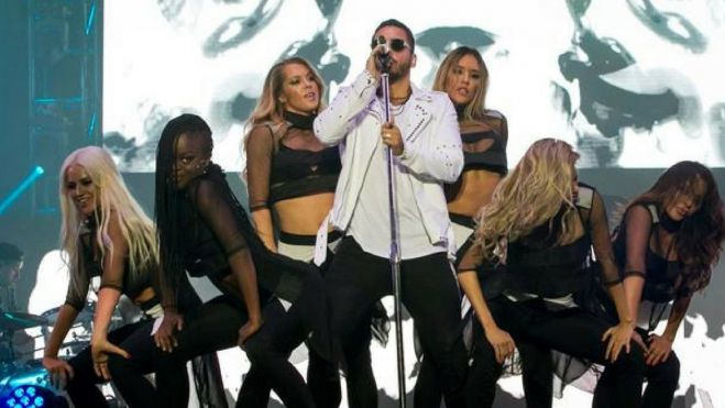 Subiendo la temperatura del Gran Canaria Arena con su pegadizo ritmo urbano y reguetonero, el artista fue aligerando su atuendo y conquistando a sus seguidores con su físico de infarto, que paseó por el escenario cumpliendo las expectativas que le precedían de conciertos anteriores, que auguraban un directo digno de las decenas de "todo vendido" que acumula.