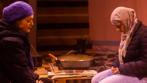 Esta obra de teatro ya consiguió el premio de teatro más prestigioso en España, el Premio Max de las Artes Escénicas a la Mejor Labor de Producción el pasado año. El montaje de la obra está planteado como una experiencia inmersiva de teatro documental. El montaje en cuyo elenco figuran las actrices canarias Marta Viera y Andrea Zoghbi, cuenta la peripecia vital en el interior de una carpa de la afgana Zhora Amiryar y la iraquí Douaa Alhavatem.