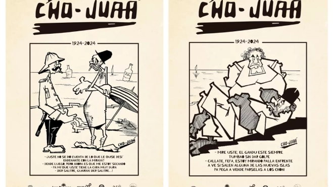 El Ayuntamiento de Las Palmas de Gran Canaria, a través del Área de Desarrollo Local, Turismo y Ciudad de Mar, junto con la Real Sociedad Económica de Amigos del País de Gran Canaria, en colaboración con la Asociación Canaria de Humoristas Gráficos y Caricaturistas, impulsa esta iniciativa para conmemorar los cien años de Cho Juaá, divulgando parte de su obra gráfica mediante algunas de sus viñetas de humor isleño.