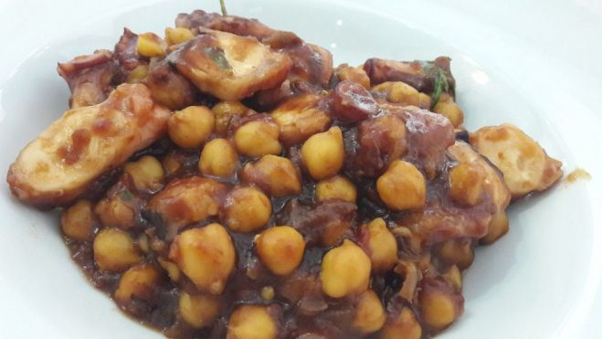 La albacora capturada en aguas de Tazacorte, escabechada con un vinagre ligero de manzana. Incontestable, aunque pedía la mente más bríos gustativos; pero, se dejaba entrever la magnitud de una carne espléndida –casi como dispuesta para una cata de variedades-, compacta. Aunque en un momento dado pidiera a gritos la escolta de un mojo hervido tradicional, nada que objetar a la finura del túnido servido.