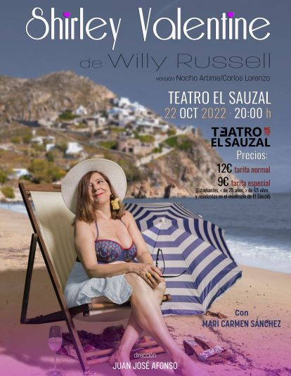 El próximo sábado, 22 de octubre, a partir de las 20:00 horas, el Teatro El Sauzal acogerá la obra de teatro Yo amo a Shirley Valentine. La compañía Cauproges trae esta comedia con Mari Carmen Sánchez como única interprete en el escenario.