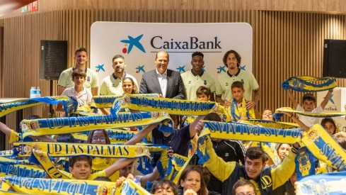 El evento, que contó con la participación de Manuel Afonso, director territorial de CaixaBank en Canarias, permitió a los asistentes charlar con los jugadores sobre sus trayectorias, fotografiarse con ellos y participar en sorteos de camisetas y merchandising del club.