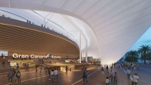 La propuesta plantea una transformación completa del estadio actual, acercando las gradas al terreno de juego y dotando al recinto de una gran cubierta ligera que envolverá el estadio, inspirada en la luminosidad y el cielo de Las Palmas de Gran Canaria.