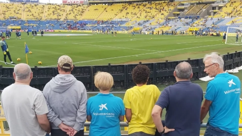 Los usuarios de la ‘Grada Solidaria’ han estado acompañados por técnicos de las 9 entidades sociales que han participado en esta iniciativa, así como por 15 voluntarios de CaixaBank. Las entidades sociales que han podido participar en el proyecto durante este año animando a la Unión Deportiva Las Palmas son: Asociación Parkinson Gran Canaria, Cear Canarias, Asociación Mi Hijo y Yo, Asociación Canaria de Cáncer de Mama y Ginecológico, Asociación Adepsi, Aprosu, Trisomía 21, Apaelp y Asociación Síndrome de Down Las Palmas.