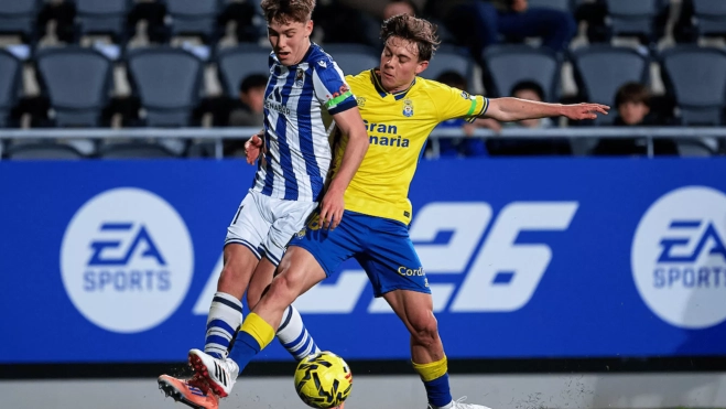 El filial donostiarra asumió la iniciativa en el primer tramo del partido, con más posesión y control territorial, aunque sin traducir ese dominio en ocasiones claras. Las Palmas, sólida atrás, fue creciendo con el paso de los minutos y logró equilibrar un duelo que discurrió sin demasiado ritmo ni continuidad.