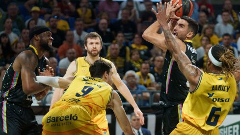 Michael Carrera sumó de tres en el arranque del segundo cuarto y luego se alzó bajo el aro, sacó la falta y anotó los dos libres. El empate a 19 salió desde las muñecas de Bassas con un triple que empezaba a enderezar la estadística perimetral de los visitantes. Cuatro puntos consecutivos de Diagne devolvieron la ventaja a los aurinegros en el marcador. Saltaron chispas entre Salvó y Doornekamp en un conato de trifulca donde se involucraron también Sergio Rodríguez y Carrera, este último sancionado con técnica.