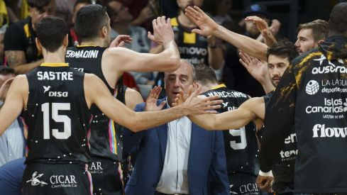 En el segundo cuarto la brecha llegó a los diez puntos cuando Abromaitis, desde la esquina, convirtió un triple y se mantuvo después de una gran circulación de balón que culminó Fran Guerra zafándose de su defensor. Para deleite del Santiago Martín continuó el juego combinativo en una jugada que comenzó con un pase de Guerra bajo las piernas de Tsalmpouris y acabó con una canasta tras finta y bote de Sergio Rodríguez.