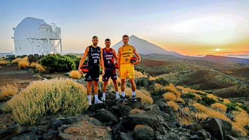 El CB Canarias pesentó esta semana el nuevo diseño de sus equipaciones para la temporada 2022-2023. Las prendas de firma Austral Sport fueron presentadas en un acto desarrollado en el Centro Cultural Aguere con la presencia de los jugadores de Doornekamp, Joan Sastre y Moussa Diagne, asi como direcitvos de la entidad y del Instituto de Astrofísica de Canarias (IAC), entidad que ha colaborado en el diseño y con la que se ha firmado un convenio para la difusión de la Astronomía. En el marco de esta colaboración, los jugadores Iván Cruz, Tim Abromaitis y Sergio Rodríguez visitaron el Observatorio de Izaña para una sesión fotográfica centrada en los cielos de Canarias como inspiración para la nueva indumentaria del club aurinegro.