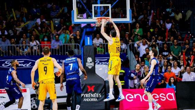 El CB Canarias venció in extremis por 75-77 en la cancha de Morabanc Andorra en el último partido de la temporada regular y avanza a la quinta posición del campeonato con una victoria que, además, certifica el descenso del conjunto andorrano a la LEB Oro. El cuadro tinerfeño dominó el encuentro durante la primera mitad con una alta anotación en triples pero los de Óscar Quintana, liderados por Miller McIntyre (máximo anotador con 23 puntos) reaccionaron tras el descanso y, en el último cuarto, consiguieron empatar e incluso ponerse momentáneamente por delante en el marcador. En un final apretadísimo, el Canarias recurrió a la conexión entre Marcelinho y Shermadini para romper la igualdad y, con una canasta del pivot georgiano en los últimos segundos de partido, certificó la quinta plaza del campeonato, con lo que se cruzará en cuartos de final Liga Endesa con Joventut de Badalona, cuarto clasificado.