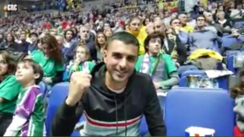 El jugador tinerfeño de fútbol del Getafe CF Ángel Rodríguez estuvo presente en el Wizink Center de Madrid para animar al Iberostar Tenerife en la victoria del equipo aurinegro ante Unicaja Málaga en los cuartos de final de la Copa del Rey.