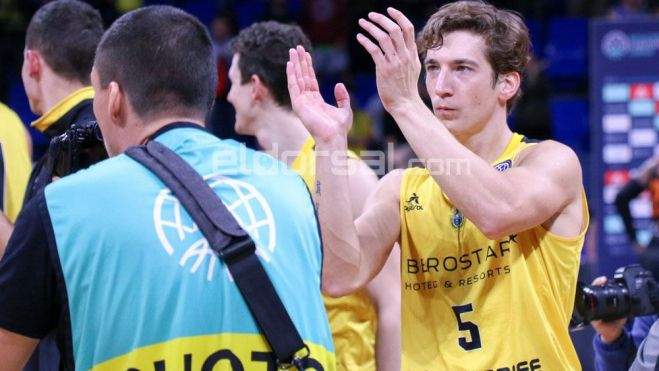 EL jugador argentino fue uno de los protagonistas de la remontada del Iberostar Tenerife ante el equipo griego Promitheas Patras entre otras cosas por este triple desde media cancha sobre la bocina que volvió 'loco' al Santiago Martín. ¡Dale al play!