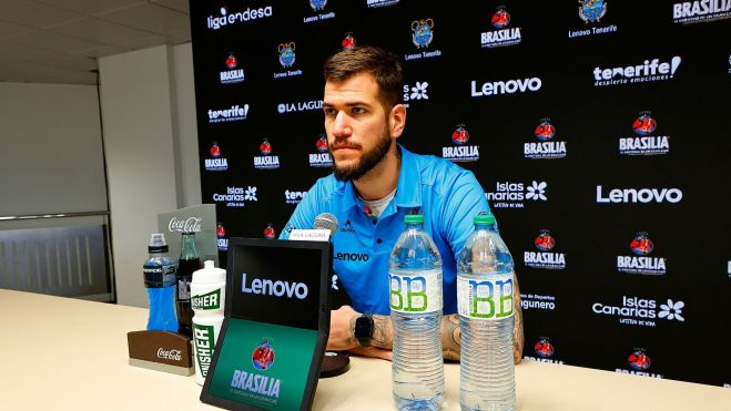 El pívot del Lenovo Tenerife, Fran Guerra, atendió a los medios de comunicación para analizar la previa del vital encuentro que el equipo canarista disputa este domingo en el pabellón Santiago Martín ante el UCAM Murcia.