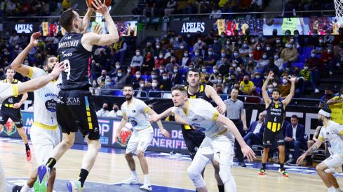 En el segundo cuarto, el equipo canarista empezó a espabilar de la mano de un Marcelinho que, además de continuar su lluvia de 'bombitas' sobre la canasta visitante, se encargaba de mejorar el juego de sus compañeros. La conexión con Shermadini se tradujo en asistencias que el georgiano se encargaba de hundir en el aro y, desde la línea de tres, Wiltjer empezaba a encontrar el acierto. Con este balance y el trabajo defensivo de Doornekamp para cazar rebotes, los tinerfeños terminaron el segundo cuarto con ventaja de 40-35, gracias, precisamente, a un triple con el que el alero estrenó su cuenta anotadora.