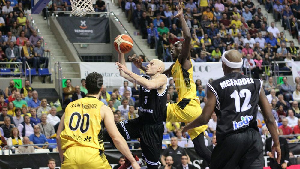 Petit Niang, Iberostar Tenerife, intenta realizar un tapón. | @JacfotografoVALORACIÓN: “Estamos muy satisfechos, teníamos que remontar los tres puntos y lo hemos hecho por mucho más. Hicimos un gran trabajo en defensa y también en ataque”.
