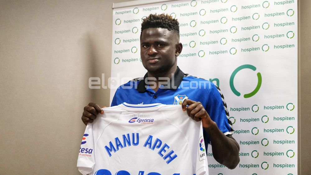 El nigeriano Emmanuel Apeh fue presentado como jugador del CD Tenerife para las próximas tres temporadas en las oficinas centrales del Grupo Hospiten. El delantero, que finalizó contrato con el RC Celta de Vigo, llega a la isla con ganas de aportar goles y mucho trabajo al equipo. Con ilusión, ganas de crecer y aprovechar la oportunidad como tinerfeñista.