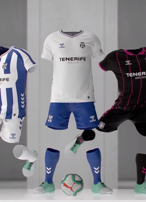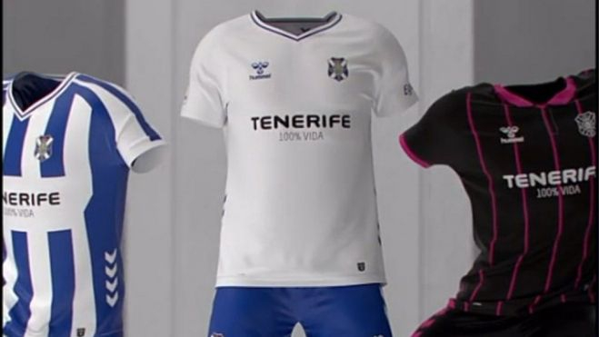 El CD Tenerife presenta en la red social Tik Tok las equipaciones para la temporada 2020-21 en LaLiga SmartBank. La primera, camiseta blanca y pantalón azul como es habitual. la segunda a rayas azul y blanco y la tercera negra y rosada.