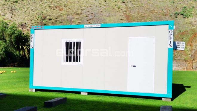 Cómo ya te hemos contado, la zona de vestuarios y oficina han sido reformada y El Mundialito contará con un gimnasio formado por estos contenedores que se ven en imagen y un comedor que estarán situados en el anexo al campo principal.