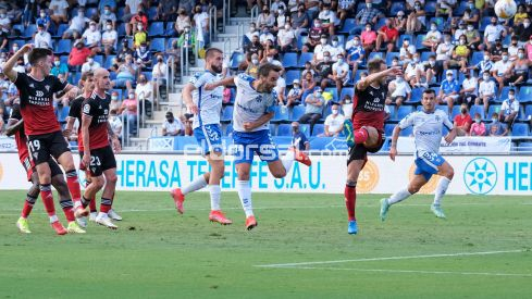 El defensa del CD Tenerife Carlos Ruiz está siendo uno de los destacados en el buen comienzo de temporada del conjunto tinerfeñista. Desde el eje de la zaga su jerarquía y rendimiento son sobresaliente. Ante la SD Huesca volvió a dar una demostración de buen trabajo defensivo, con brecha en la cara incluida.