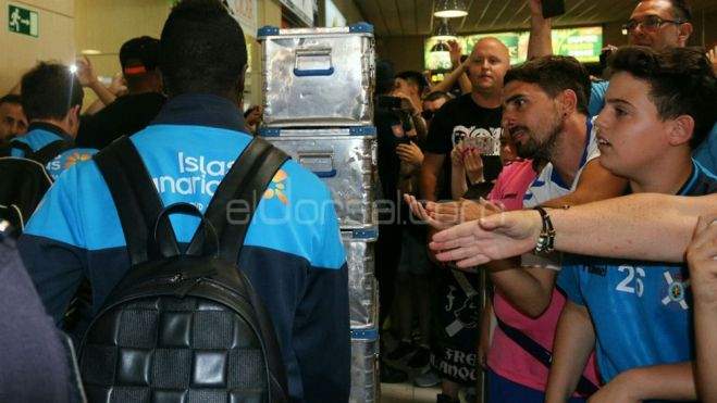 Tal y como se puede comprobar en el vídeo en directo de ElDorsal.com emitido por Facebook, la plantilla fue recibida con aplausos y cánticos que a buen seguro habrán reconfortado a unos jugadores cuyos gestos transmitían mucha tristeza, tras quedarse a las puertas del ascenso. Los Rodeos era un clamor: "oé, oé, a Primera volveremos, oé, oé".