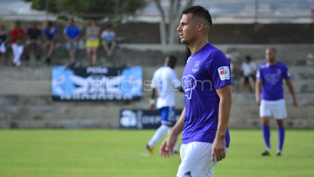 Úbeda, central de la UD Ibarra | @ivangg_tfeLos primeros 45 minutos mostraron a dos equipos en busca de los tres puntos. El primero en avisar sería el filial blanquiazul. Corría el minuto 16 cuando Adrián se marchó por banda y, tras la salida del meta, chutó buscando sorprender. Sin embargo, el cuero se paseó por el interior del área sin encontrar rematador. Pocos minutos después llegó la réplica local. Balduino recogió el balón en el interior del área y remató con dureza contra el poste de la meta defendida por Otaño.