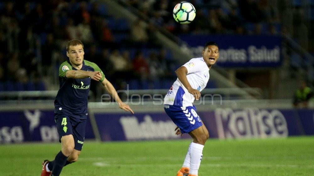 Los blanquiazules se llevaron la victoria ante el Sporting | @JacfotografoEn el segundo tiempo salió mucho más enchufado el CD Tenerife. Con la velocidad de Mula y Villar hacían daño los de Etxberría. Juan Villar pudo hacer el 1-0, pero su disparo se marchó cerquita de la escuadra. El Sporting fue despertando de nuevo y el partido se convirtió en un ida y vuelta. Malbasic avisó con un remate flojito y poco después hizo el 1-0 que al final decidió el choque. Triunfo blanquiazul que no vale para mucho, pero al menos salva el honor de los insulares.