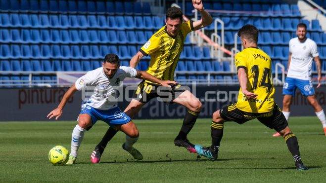 El CD Tenerife hundió a su rival en los últimos diez minutos de partido pero no consiguió la fórmula para encontrar alguna ocasión clara de gol. El conjunto asturianos no se complicó en la salida de balón y tuvo una última oportunidad para aumentar la ventaja en el luminoso. Blanco Leschuk remató en el segundo palo un centro perfecto pero su cabezazo se fue cruzado por poco en el minuto cuarenta y cuatro. Sin más noticias se llegó al descanso con ventaja visitante (0-1).
