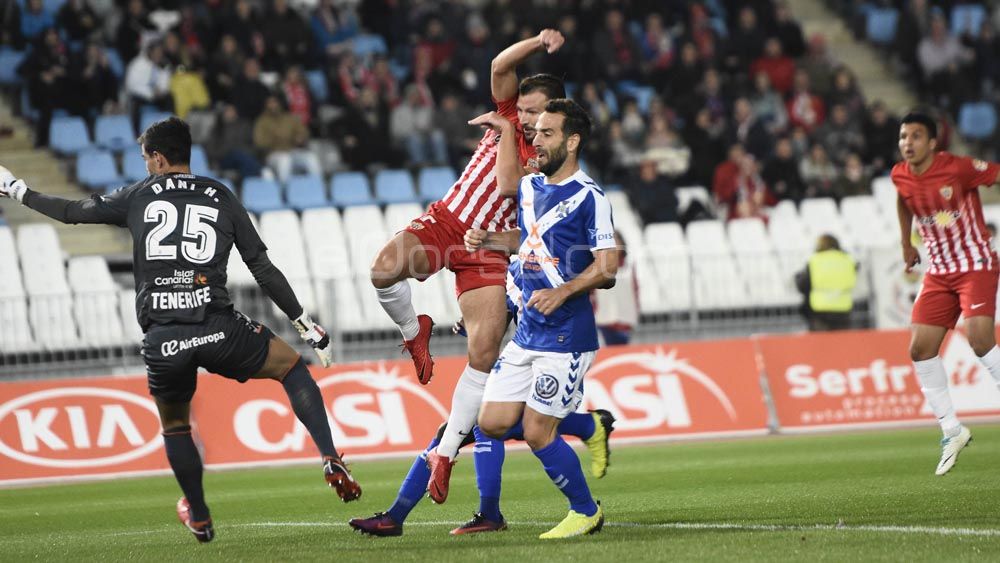 Dani, con Carlos Ruiz intentando evitar un gol en el último Almería-Tenerife en liga | Juan SánchezÚLTIMO PARTIDO DOMINICAL