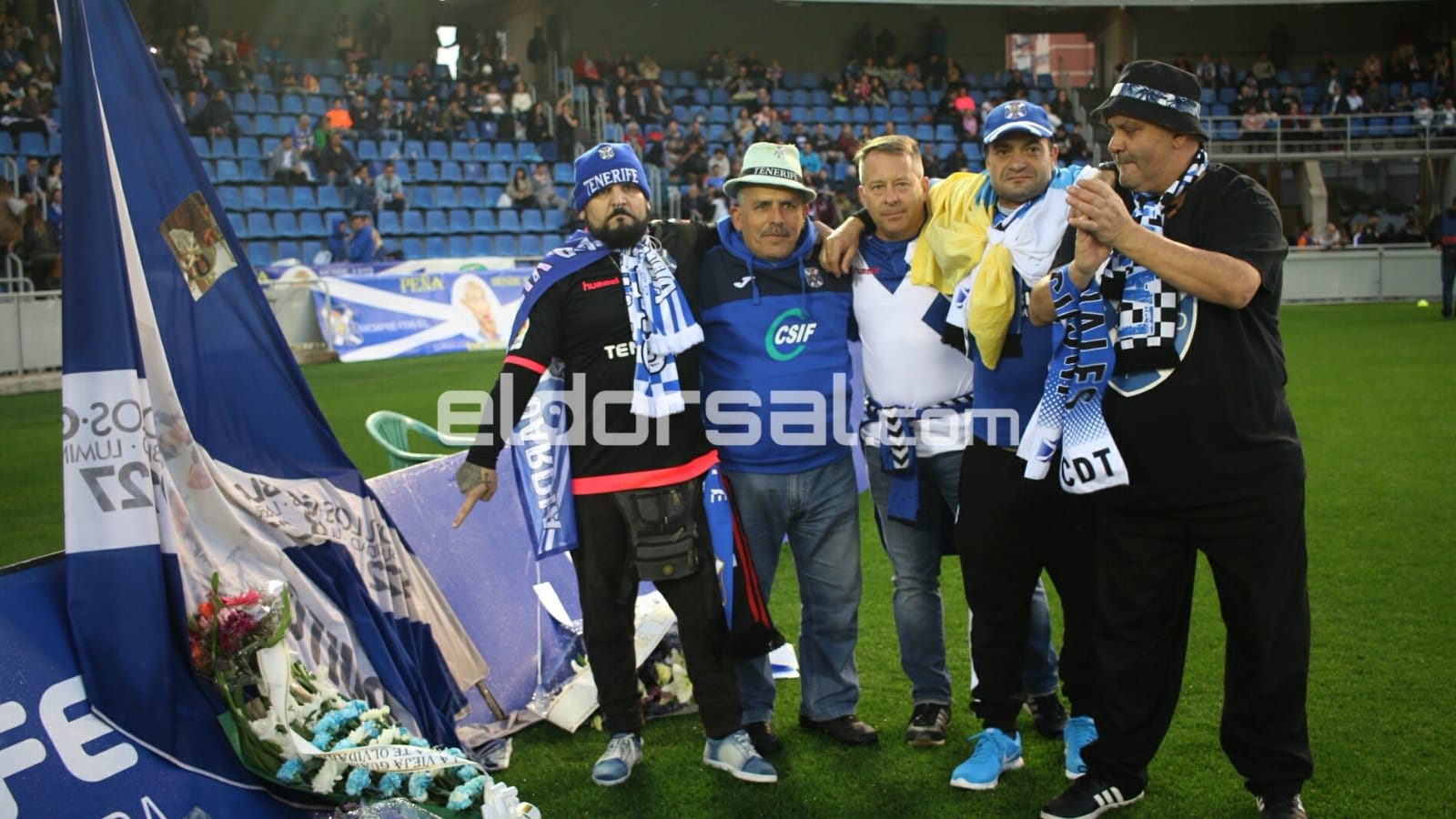 Un ramo de flores y una gran ovación hacia el cielo, protagonistas instantes antes de un choque en el que los jugadores blanquiazules buscan dedicar una necesaria victoria a uno de los tinerfeñistas más fieles de la historia reciente.