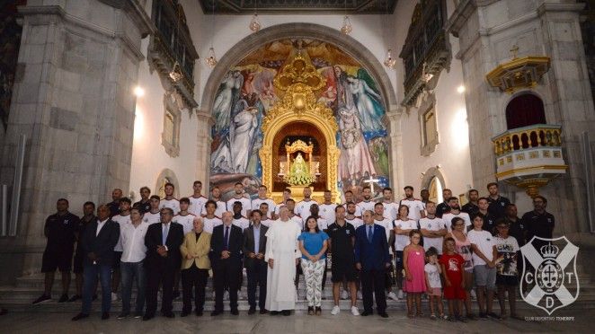 Una destacada representación del CD Tenerife visitó a la Patrona de Canarias este miércoles, en la esperada ofrenda que anualmente lleva a cabo el club blanquiazul. El presidente de la entidad, Miguel Concepción, encabezó esta tradicional visita junto a un representación del consejo de administración, así como la totalidad de la plantilla y el cuerpo técnico.