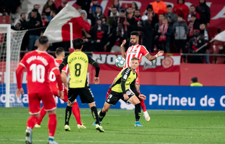 El equipo visitante quiso hacerse con el ritmo del juego desde el minuto uno y lo consiguió a partir de la receta que todos sabemos ya a estar alturas. Mucha posesión, comenzando las jugadas desde atrás, con el guardameta Ortolá como principal protagonista de ello. Sin embargo, la buena puesta en escena del equipo de casa hizo que el CD Tenerife no encontrara pasillos para superar líneas con el balón. El primer intento de gol lo tuvo el Girona FC, con un disparo desde la frontal del área que impactó en la madera. La respuesta, en el minuto quince la firmó Luis Milla, con un centro que se desvió y golpeó también en el palo derecho de la portería rival.