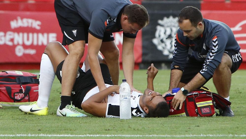 En el tramo final del choque que se disputó en tierras catalanas el ariete grancanario sufrió un fuerte golpe de manera fortuita ante Dimitrevski que provocó su hospitalización. Se fracturó dos costillas.