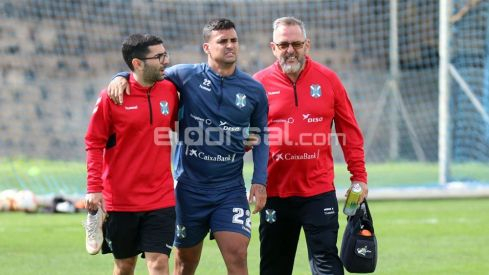 El delantero del CD Tenerife Nano Mesa se ha perdido los dos últimos partidos a causa de molestias musculares y desde entonces trabaja en solitario para recuperarse y poder ayudar al equipo.