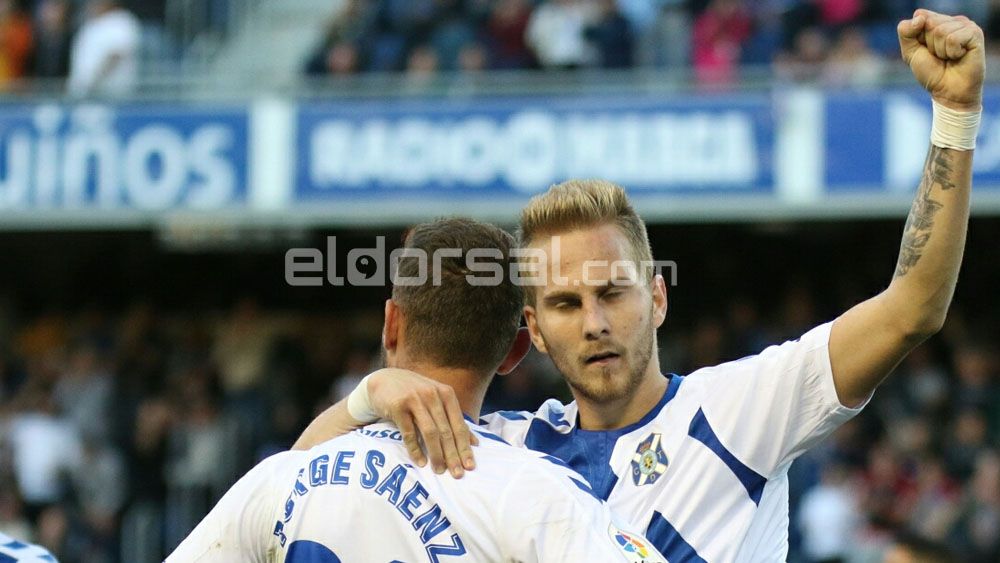 Racic celebra un gol con el CD Tenerife / @jacfotografoEl buen trato de balón de los dos recién llegados junto al de Luis Milla significó que Racic acabara el partido con un 77% de precisión, Lasso con un 85% y Luis Milla con un 87%.