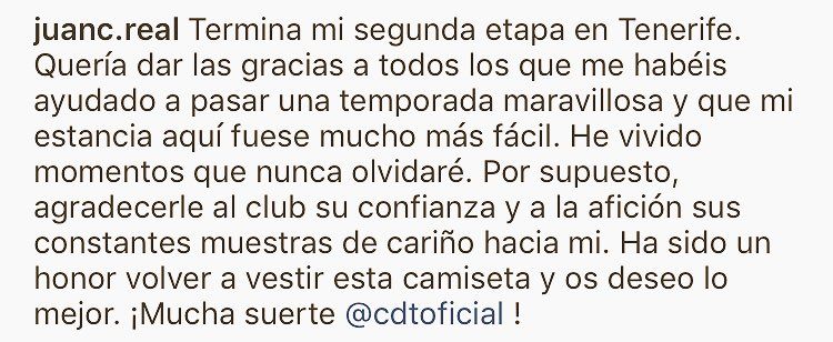 Juan Carlos Real puso fin, días atrás, a una segunta etapa como jugador del CD Tenerife, con más bajos que altos, sin los minutos que deseaba.