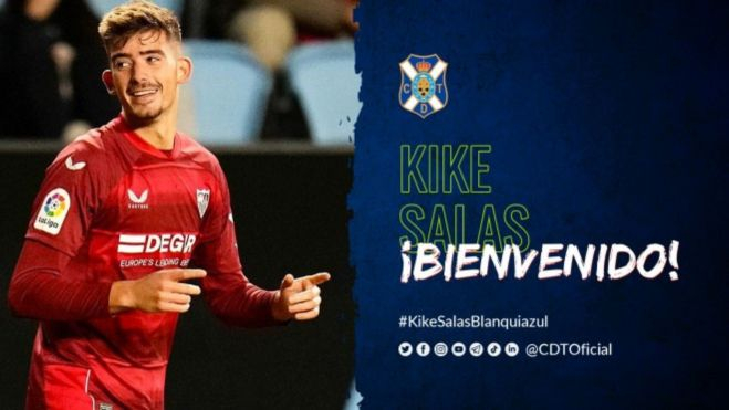 El CD Tenerife ha hecho oficial la incorporación de Kike Salas hasta final de la presente temporada, cedido por el Sevilla FC, una vez se ultimen los trámites administrativos y supere el preceptivo reconocimiento médico.