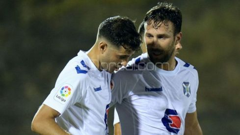 Juan Villar celebra un gol con el CD Tenerife | @JacfotografoPero no solo contra Las Palmas han visto puerta los atacantes. En el primer partido de pretemporada Juan Villar no pudo anotar, aunque gozó de hasta cinco ocasiones para hacerlo, por lo que en El Hierro se resarció firmando un triplete. Víctor Casadesús, por su parte, vio puerta contra el Marino, donde también fue asistente y marcó otro tanto en El Hierro.