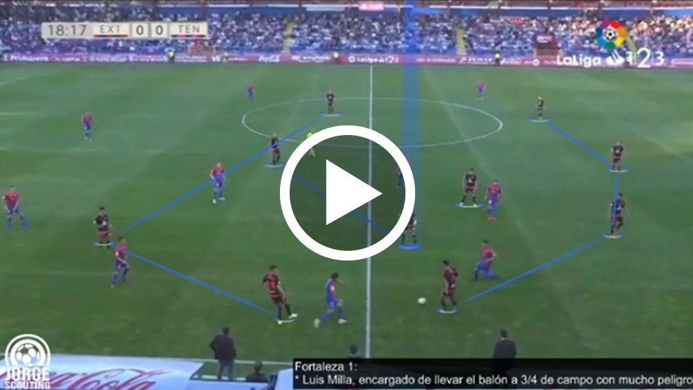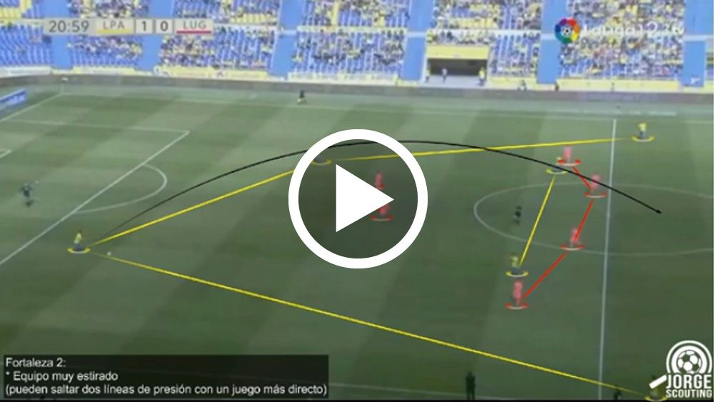 FORTALEZAS UD LAS PALMASSus piezas ofensivas son letales en el área. A un equipo que tiene goleadores contrastados no se le puede permitir entrar en el área con facilidad. No perdonan. Además, tienen diferentes recursos ofensivos y el juego directo es otra de sus bazas. Su salida de balón se realiza con 4+2 pero también utilizan el envío en largo al medio del campo saltándose líneas de presión y jugando “más directo”.